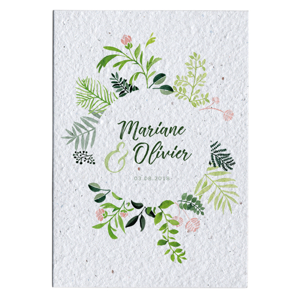 Si vous préférez quand même avoir une jolie papeterie, privilégiez encore une fois le papier recyclé ou le fameux papier ensemencé (si vos invités ne repartent pas avec, vous pourrez toujours le planter vous même ou en faire profiter vos voisins).